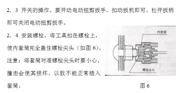 2.1 對電動扭剪扳手進(jìn)行調(diào)整或更換附件、備件之前,必須切斷電源。