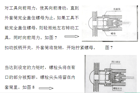 1.電動扭剪扳手操作規(guī)程 警告!在使用電動扭剪扳手時,為避免火災(zāi)、電擊、受傷及機(jī)械損傷等意外事故,必須嚴(yán)格遵守以下規(guī)程。