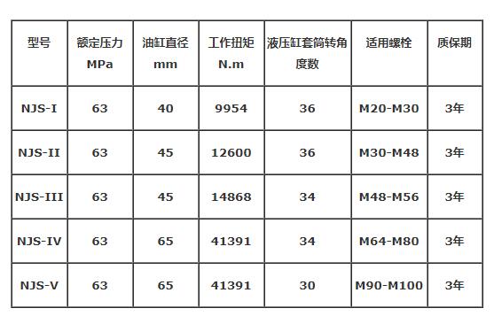 驅(qū)動(dòng)式液壓扳手技術(shù)參數(shù):